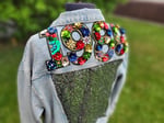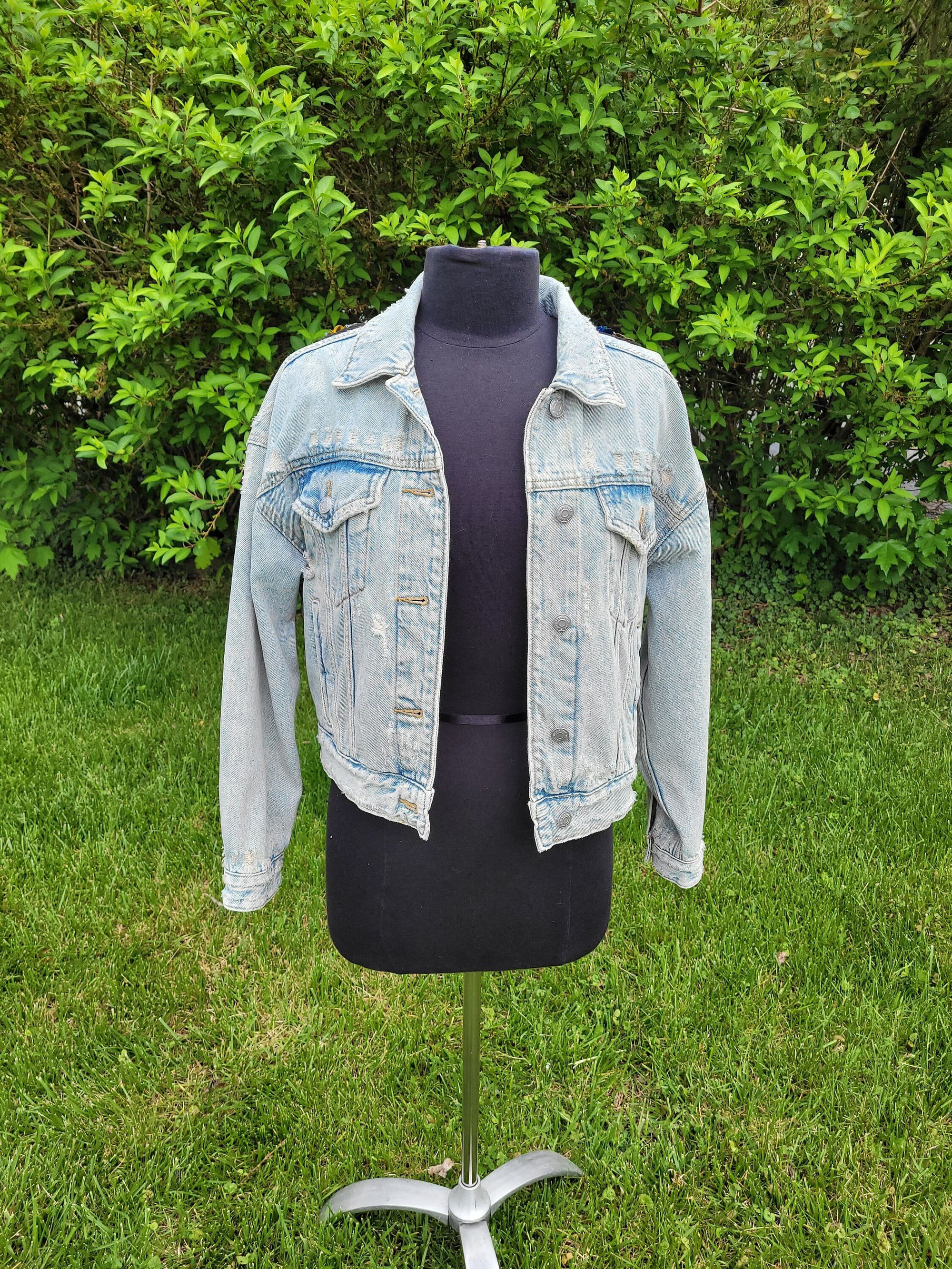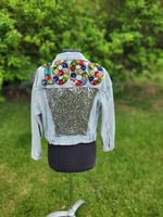 Women's xs demin jacket with 3D floral 1989.