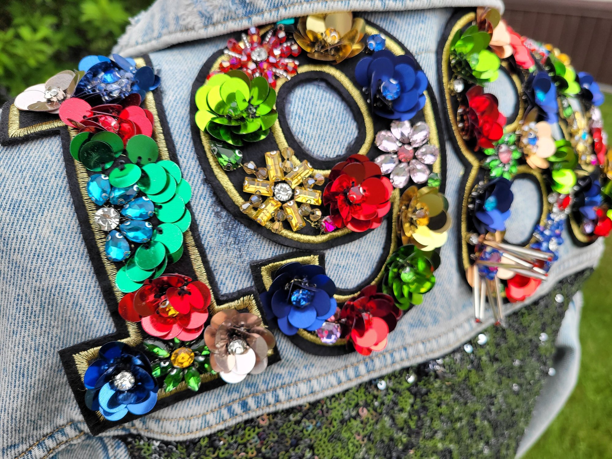 1989 3D floral Denim Jacket xs