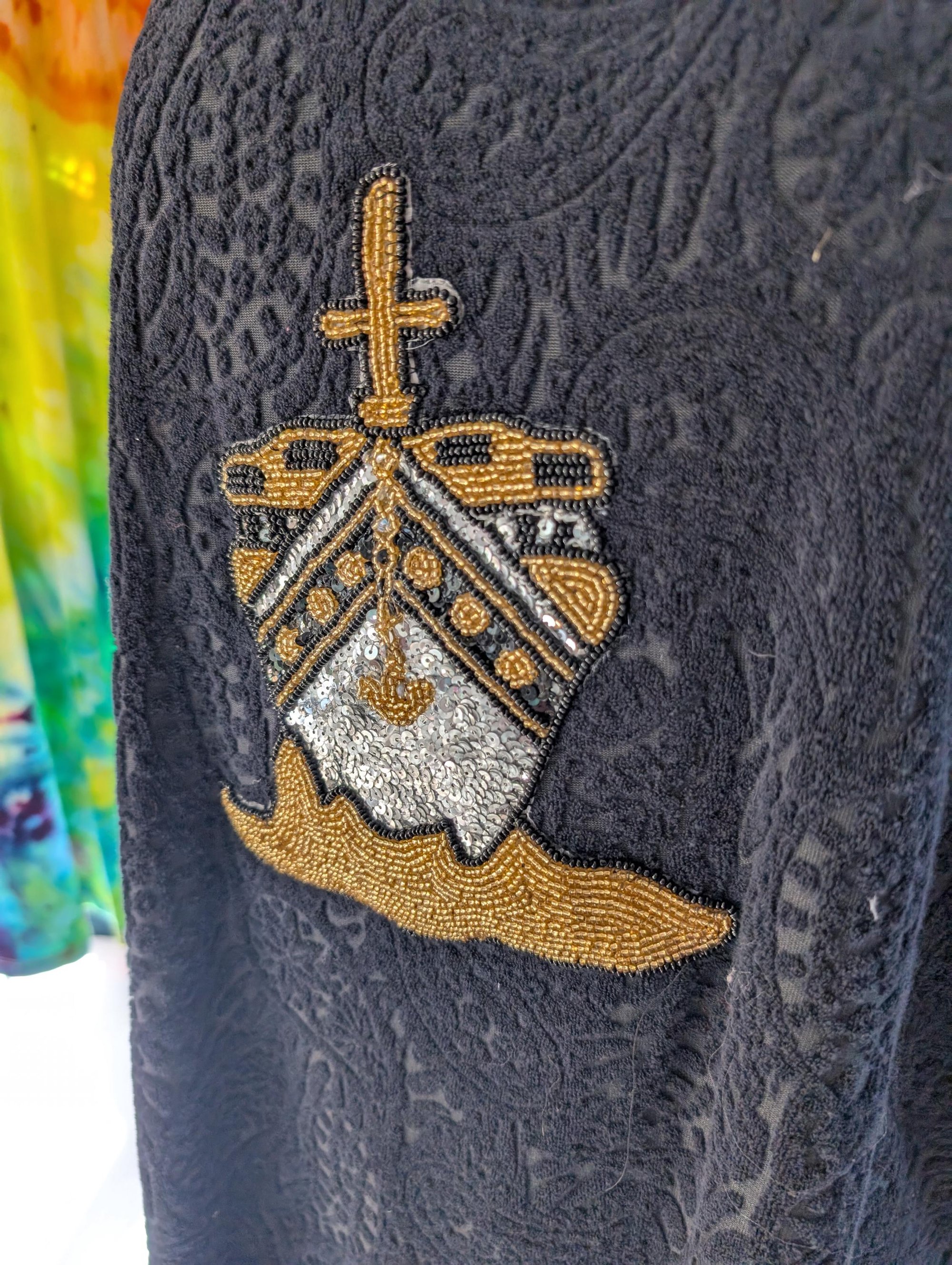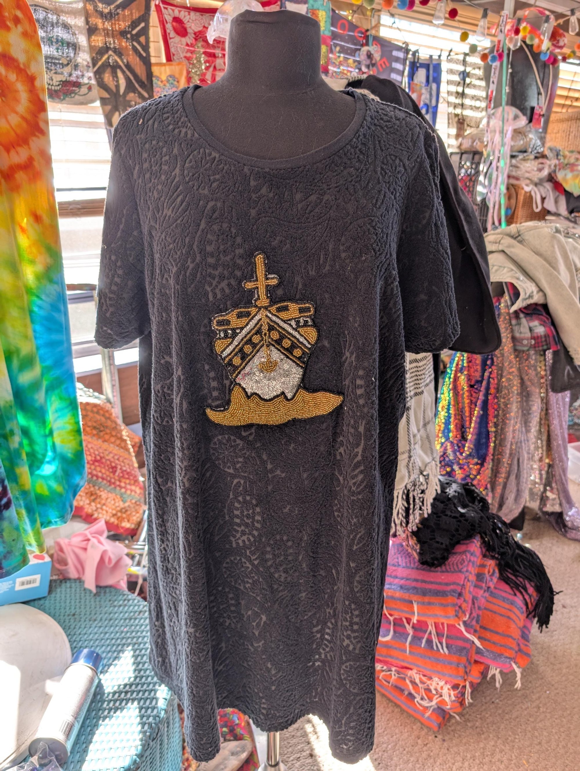 black Terry dress with vintage cruise ship applique xl