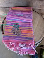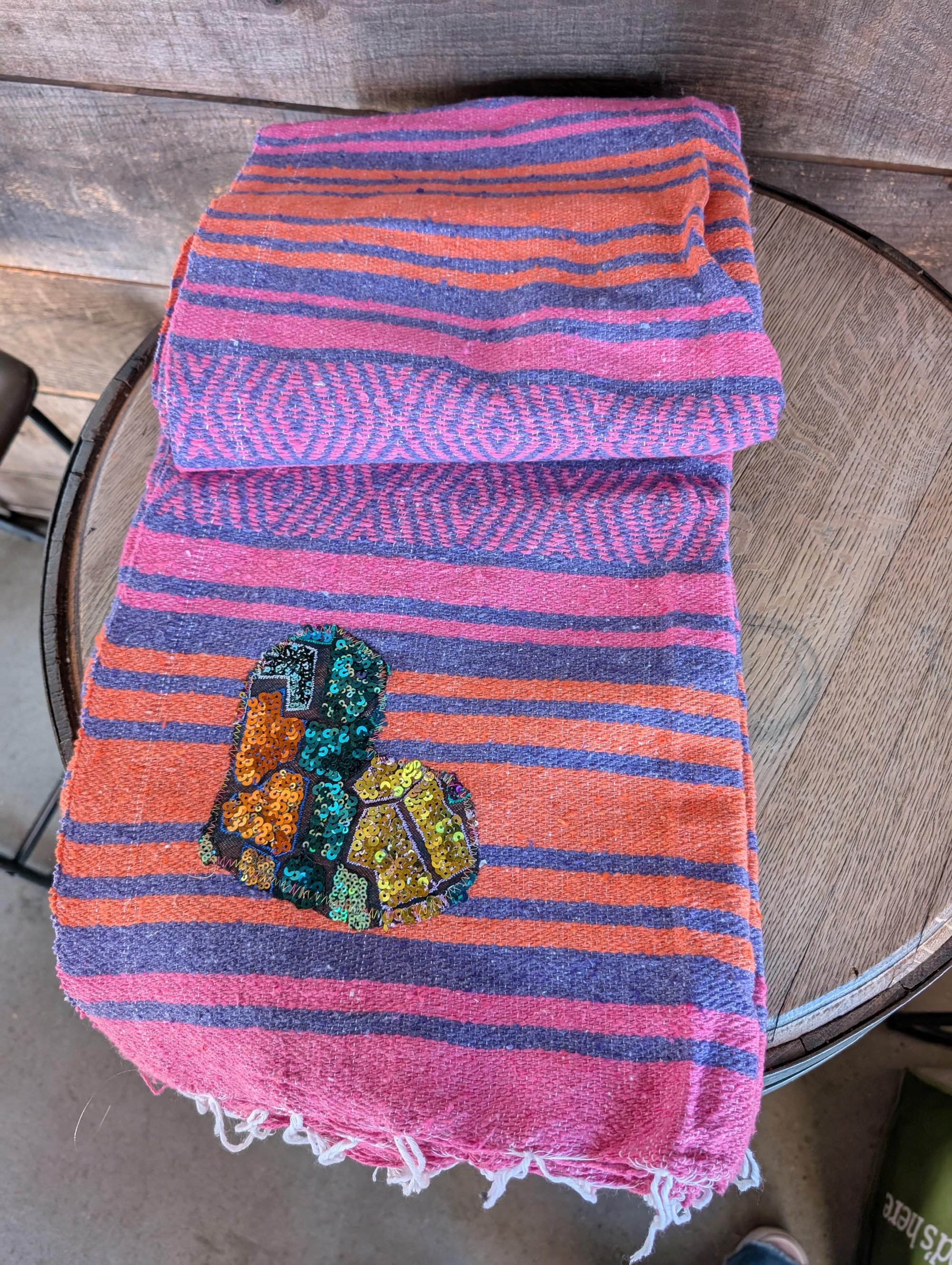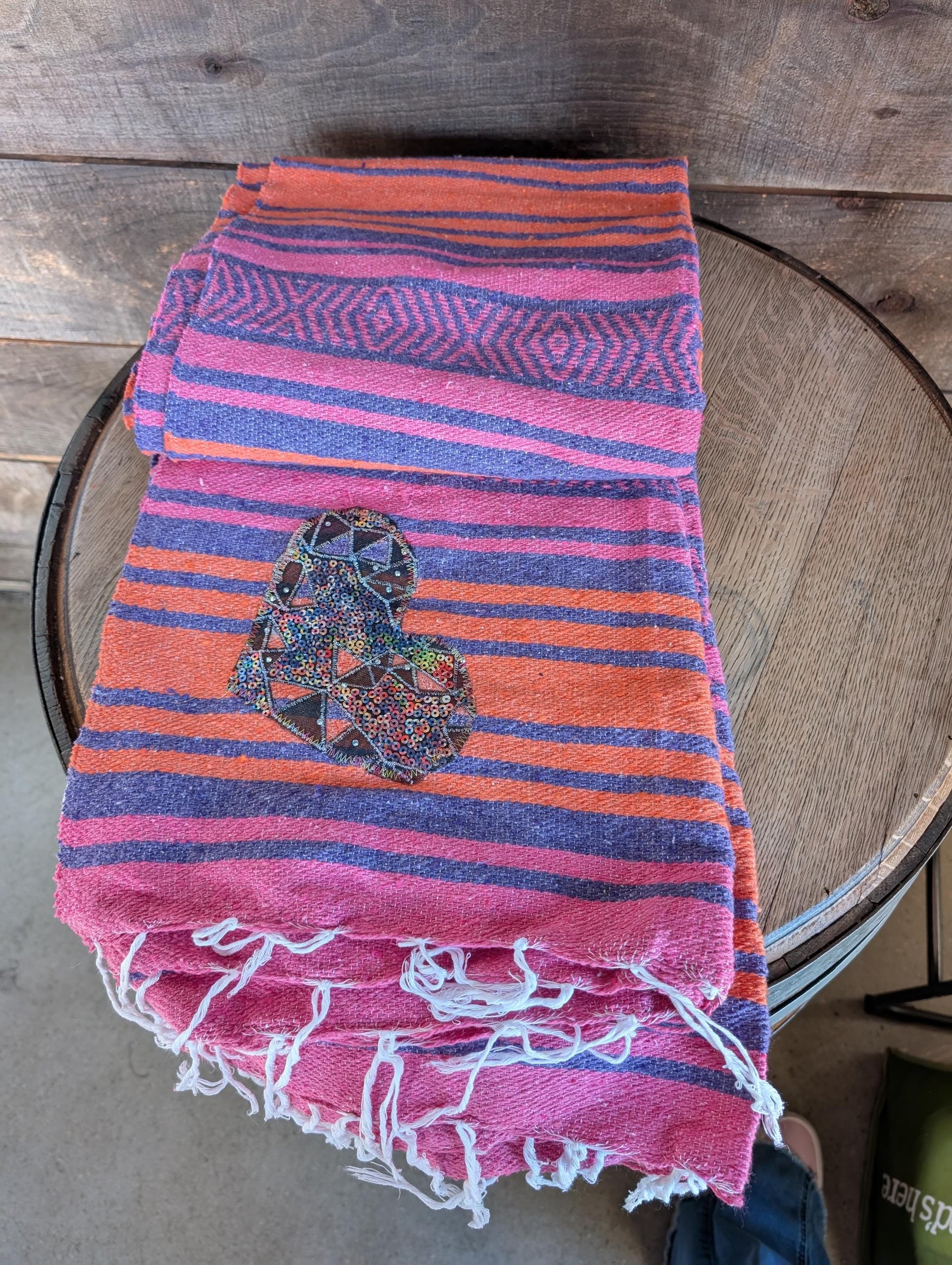 Thick woven yoga blanket with sequin applique heart made from scraps