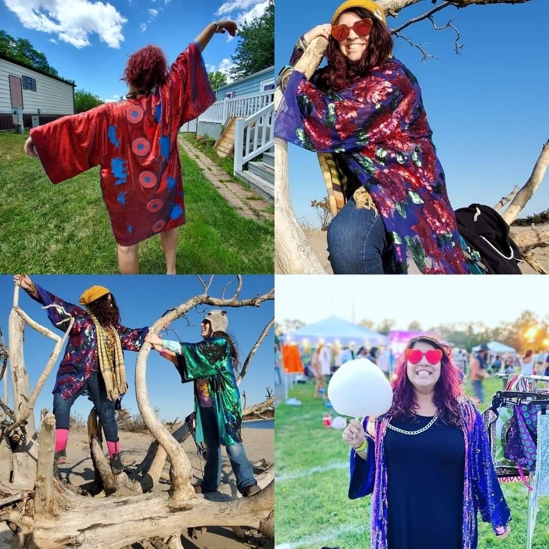 One size fits most made to order sequin duster.