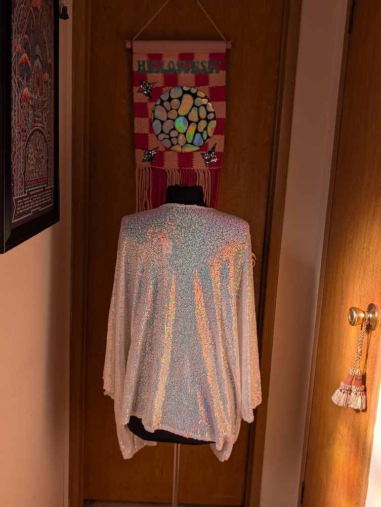 White iridescent sequin kimono